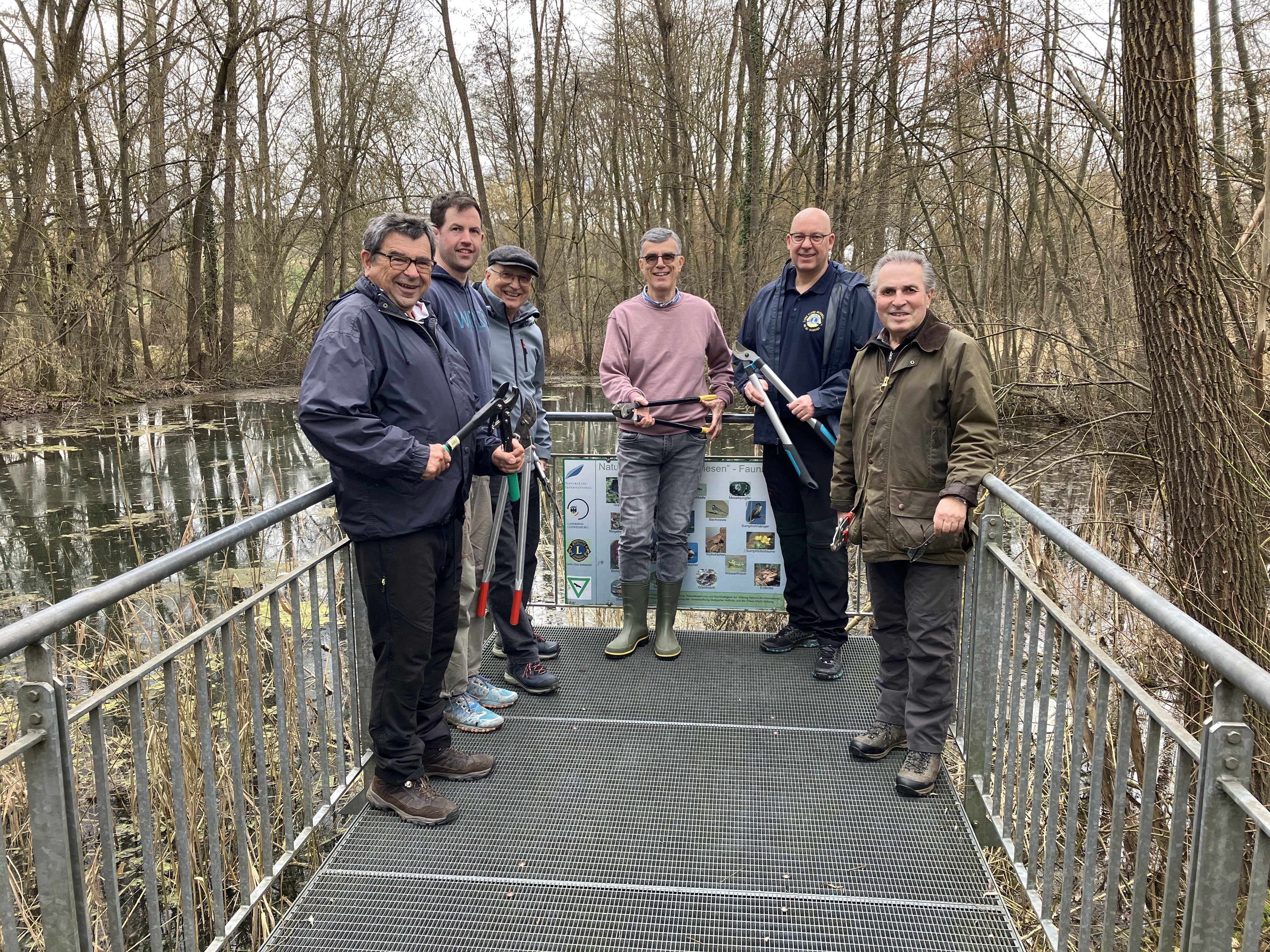 Rechtzeitig, bevor „im Märzen der Bauer die Rösslein einspannt“ und die Natur an der Bottwar zu neuem Leben erwacht, haben Mitglieder des Lions Clubs Bottwartal bei einer Baumschnittaktion aktiv Hand angelegt. Die mit Unterstützung der Lions entstandene Baumreihe entlang des Rad-Wander- und Spazierweges in der Bottwar-Aue zwischen Groß- und Kleinbottwar sollte fit für das beginnende Frühjahr gemacht werden. Dazu trafen sich Mitglieder des Clubs, bewaffnet mit Gartenscheren, Baumschneidern und Handsägen, zu einem Arbeitseinsatz am letzten Februarsamstag rund um das bekannte Wasserbüffel-Gehege. Der Einsatz wurde von den beiden Umweltbeauftragten des Clubs, Claus-Peter Hutter und Manuel Rohland, fachmännisch angeleitet. „Die Februarwochen sind das richtige Zeitfenster für eine Auslichtungskur an den Gehölzen, die mit Lions-Hilfe hier gepflanzt wurden“, weiß Claus-Peter Hutter. Und Manuel Rohland ergänzt: „Die Bäume brauchen regelmäßige Pflegeschnitte, damit sie nach der Winterpause gesund weiterwachsen können.“